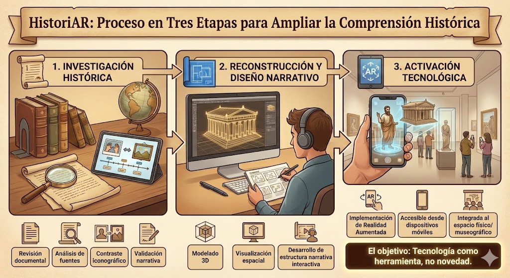 Cada proyecto de HistoriAR sigue tres etapas estructuradas: