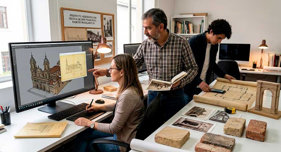 Este proceso requiere conocimiento en historia de la arquitectura y diseño estructural. La imagen no se copia; se interpreta.