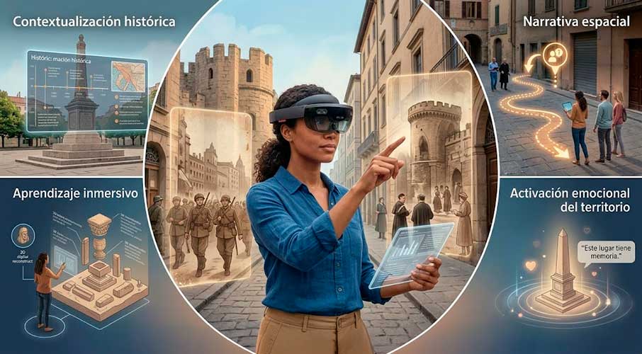 La realidad aumentada ofrece una nueva capa de lectura del espacio urbano. No sustituye la historia; la reactiva.