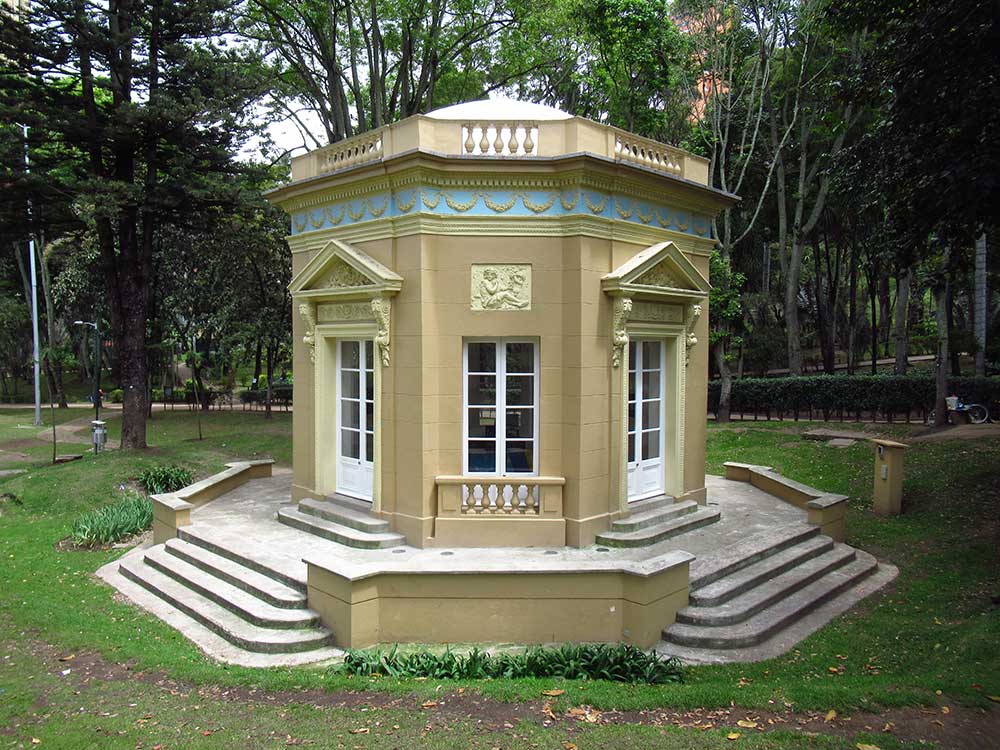 Aunque su lenguaje formal es historicista, el quiosco fue el primer edificio en Bogotá construido en concreto armado producido en Colombia, material donado por la Compañía de Cementos Samper.
